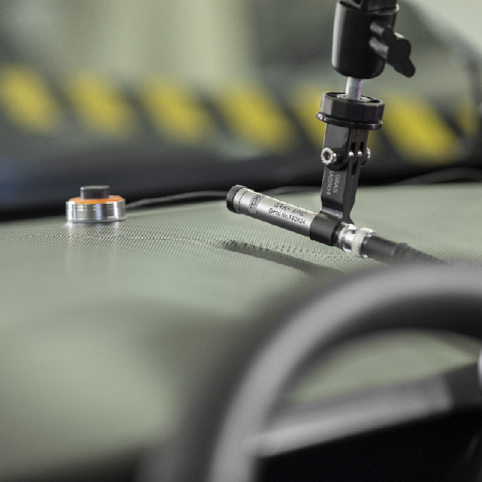 We recommend to use a low-noise type microphone like e.g. GRAS 47HC ½” CCP Low-noise Microphone System. Another option is to use GRAS 147AX CCP Rugged Pressure Microphone, which has a unique mounting system, MagMountTM, ensuring precise repeatable tests in the cabin in combination with driver seat measurements using GRAS 146AE ½” CCP Free-field Microphone Set.